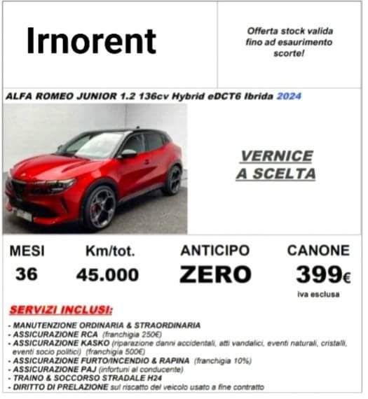 Contattaci per scoprire quali mezzi sono attualmente disponibili; quelli che trovi su questa pagina potrebbero essere già noleggiati. Non perdere l'occasione!